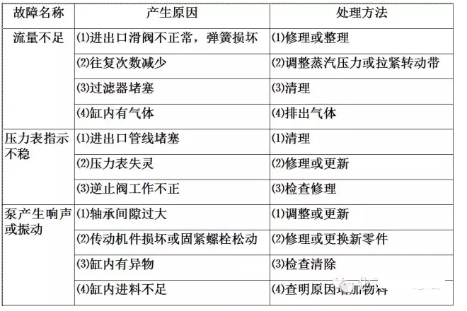 3)檢查完畢后,就可緩慢開(kāi)啟蒸汽閥門對(duì)蒸汽缸預(yù)熱,待到疏水閥有汽后即可關(guān)閉,然后打開(kāi)泵的放空閥和進(jìn)液閥。打開(kāi)蒸汽閥門使泵運(yùn)行,隨之關(guān)閉放空閥,正常運(yùn)行。